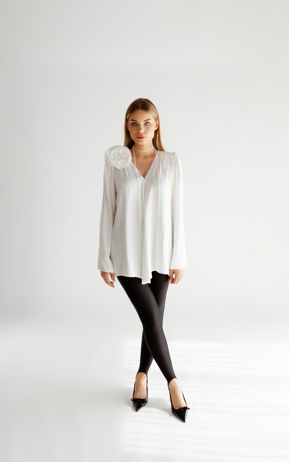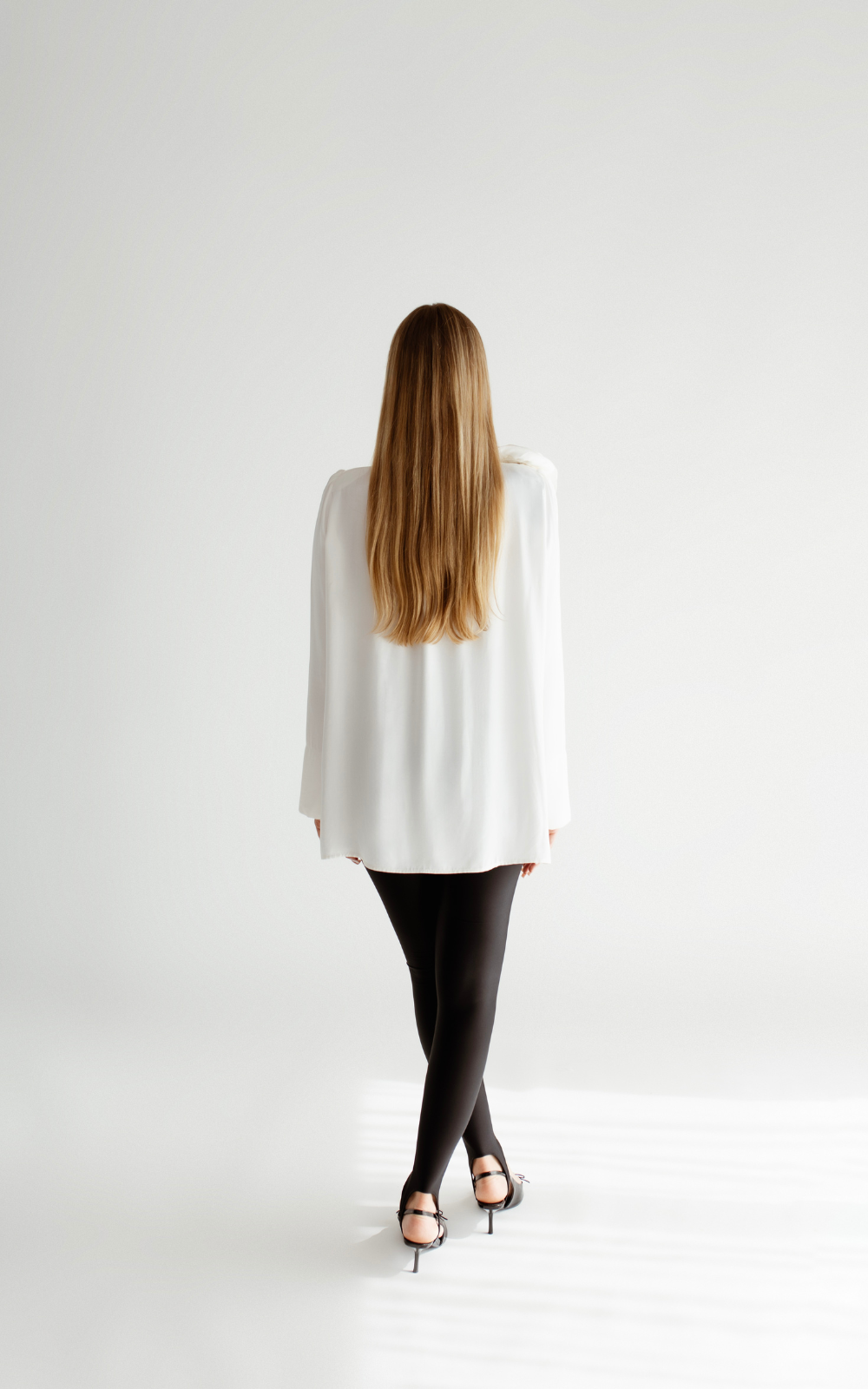Koszula została uszyta z najwyższej jakości 100% wiskozy, która delikatnie otula sylwetkę, nadając jej lekkości i elegancji.