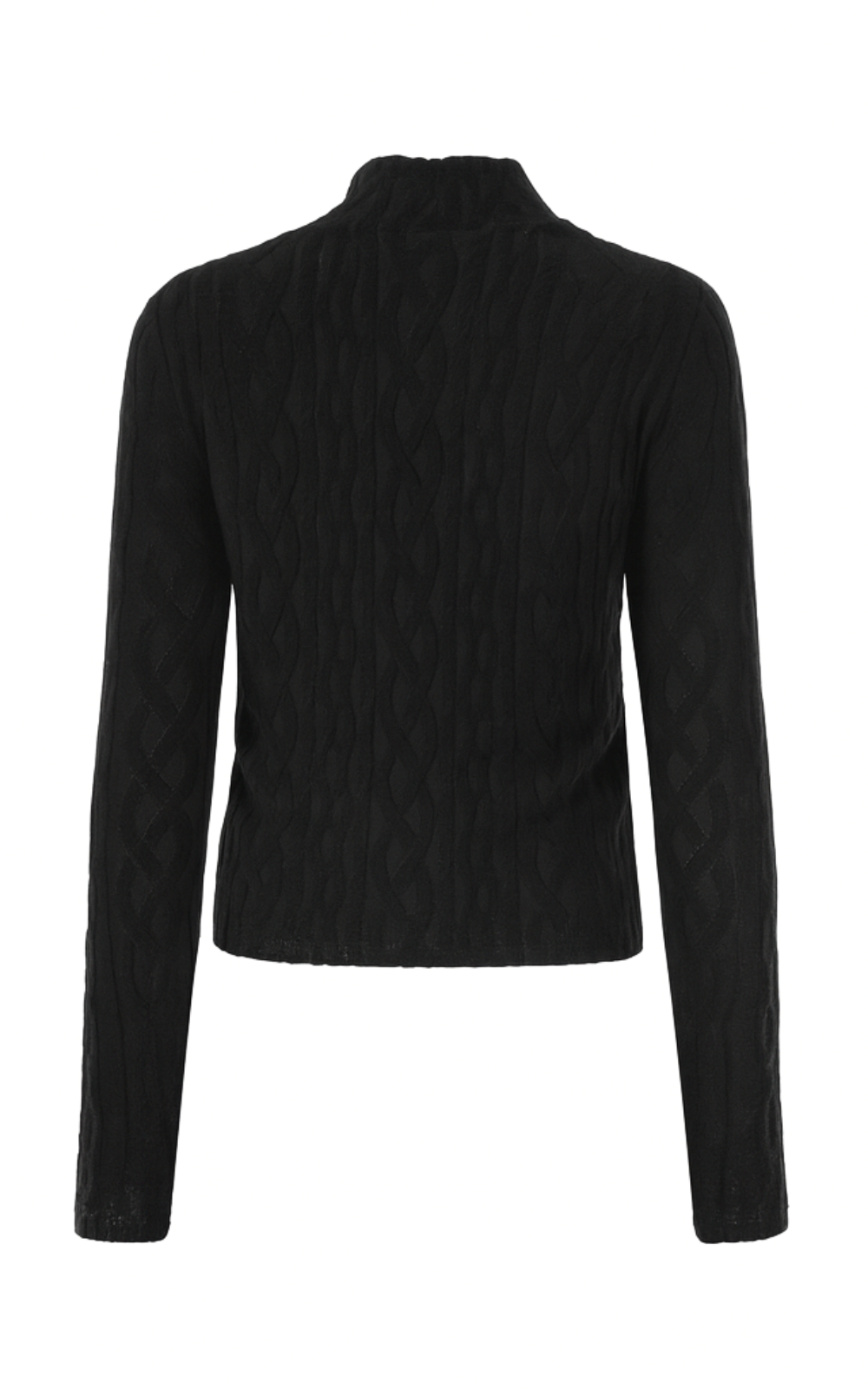 - Sweter o dopasowanym kroju wykonany z miękkiej dzianiny o wyrazistym, warkoczowym splocie. Model z subtelną stójką i długim rękawem, który otula sylwetkę, podkreślając kobiecą linię.