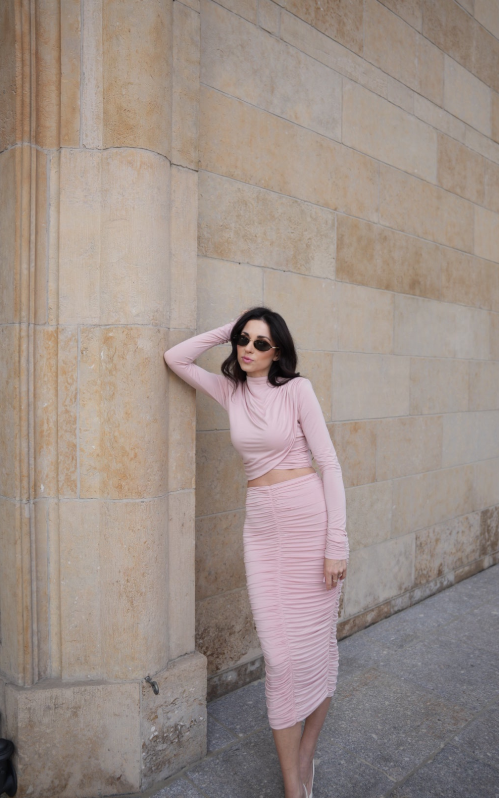Spódnica LOREN maxi w kolorze pudrowego różu to propozycja dla kobiet, które cenią ponadczasową elegancję i wysoką jakość materiałów.