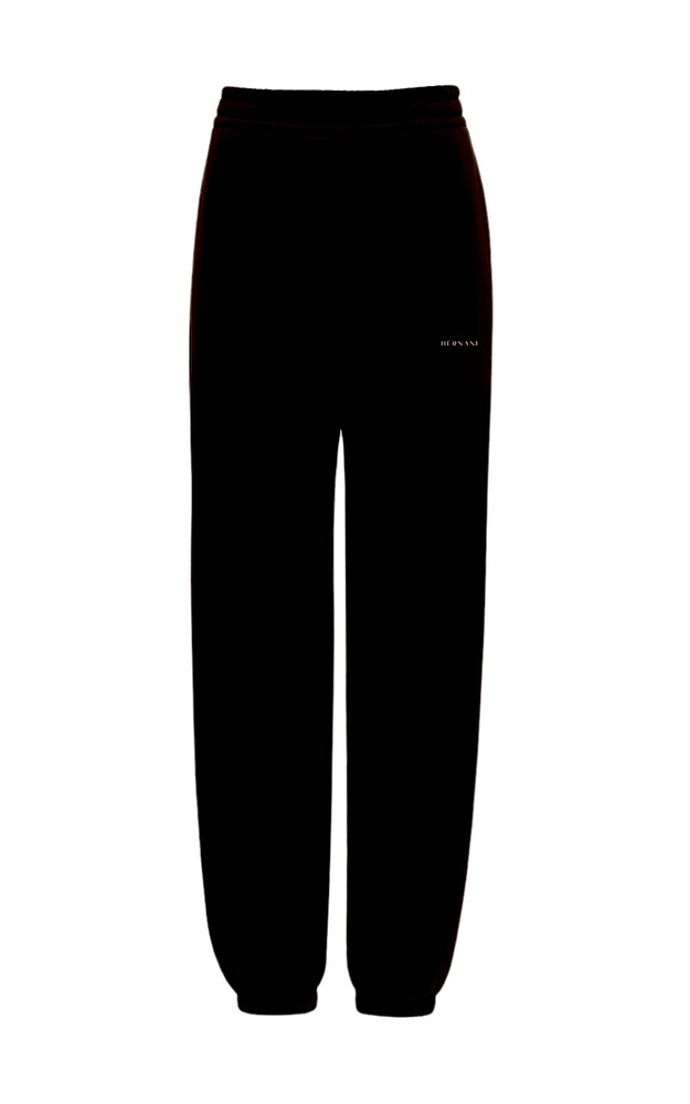 W pasie szeroka, elastyczna guma zapewniająca wygodne dopasowanie, dodatkowo regulowana sznurkiem – możesz nosić je klasycznie w talii lub lekko opuszczone na biodra. Na prawej nogawce subtelny haft z logo HÈRNANI, który dodaje całości sportowej elegancji.