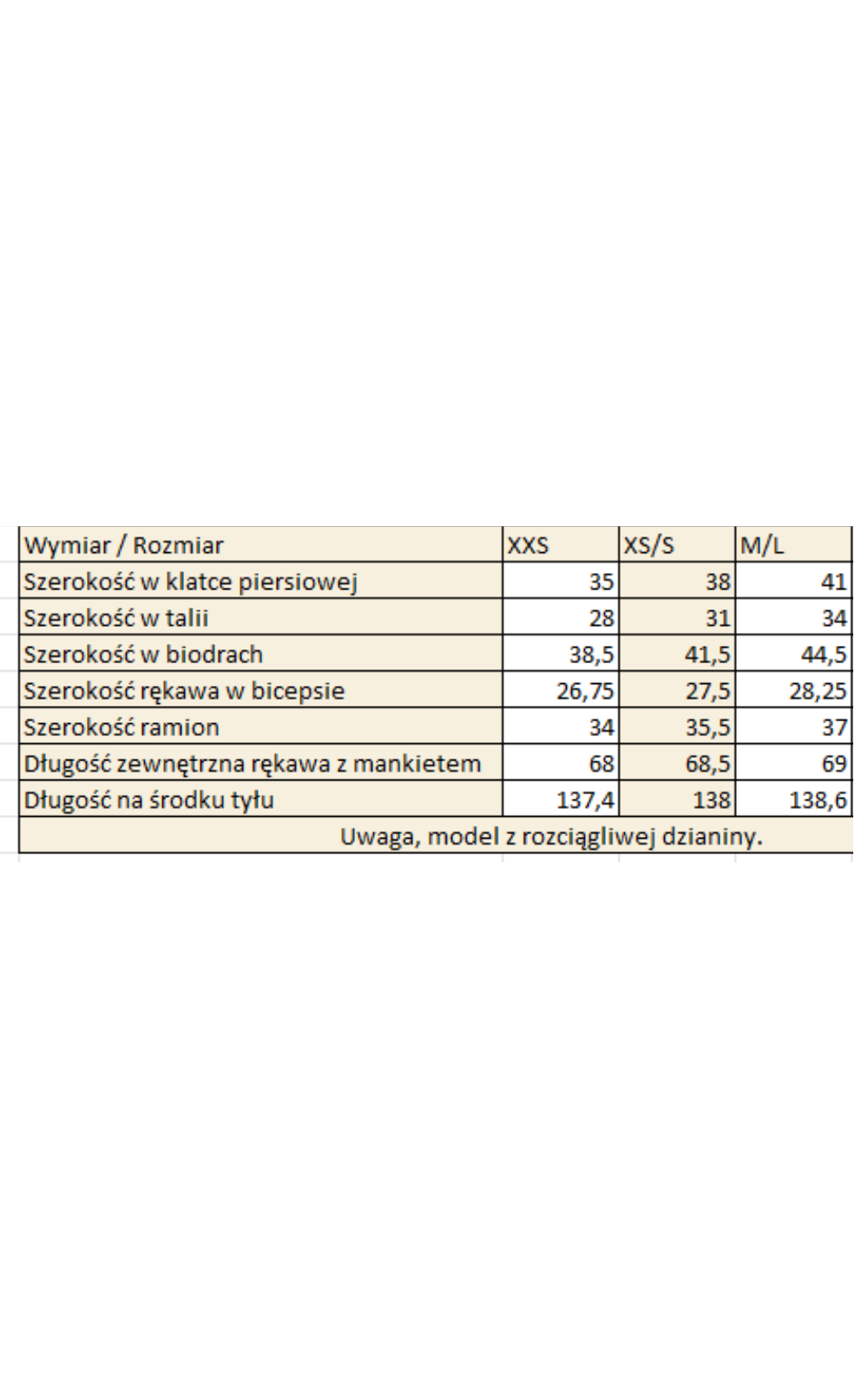 - DŁUGOŚĆ RĘKAWA: ok 69 cm x2