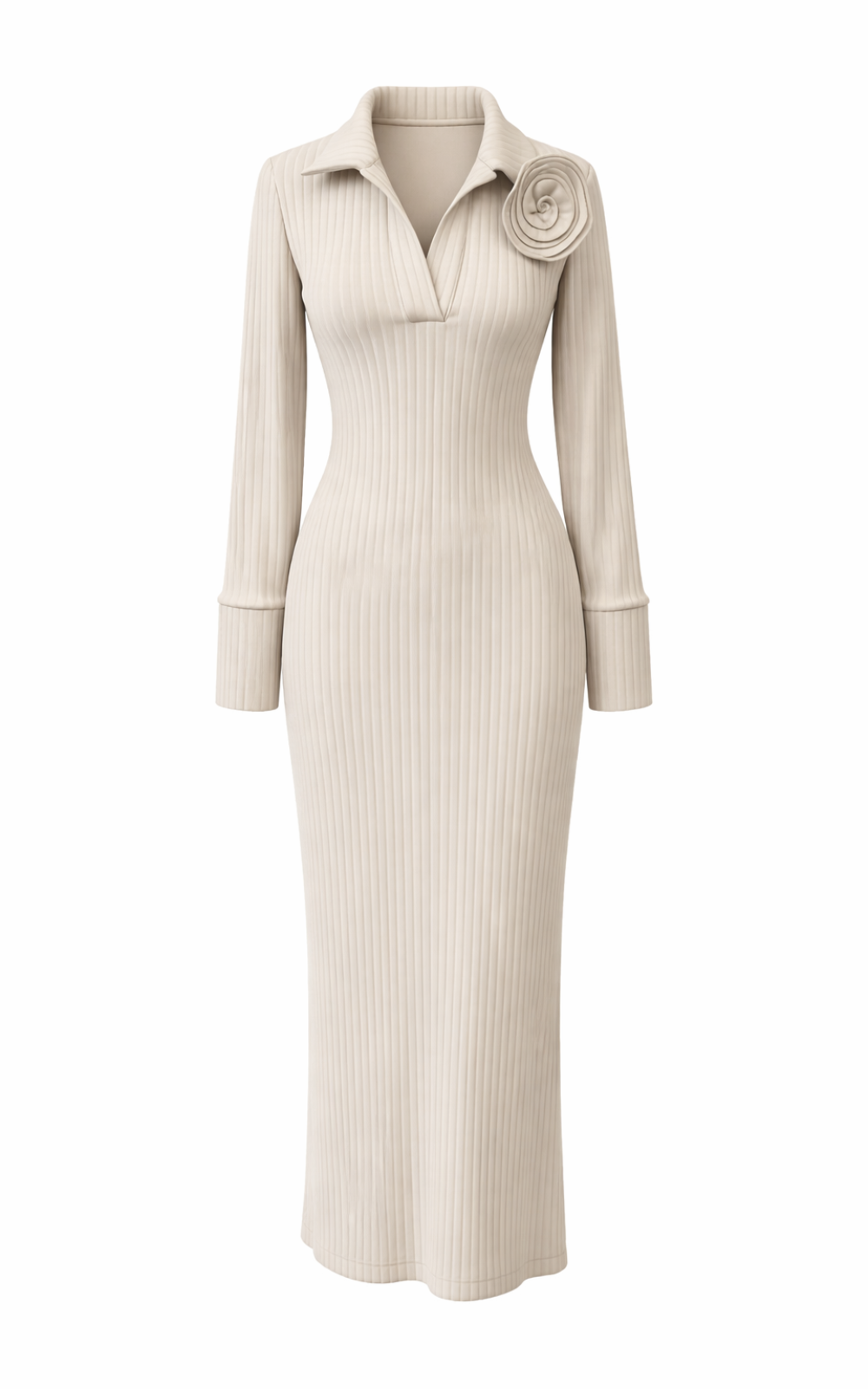 - Dzianinowa sukienka o dopasowanym kroju, w zestawie odpinana broszka ROSE.