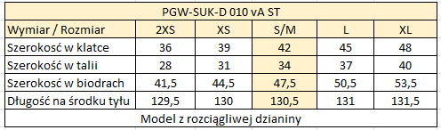 Wymiary sukienki mierzone na płasko dla rozmiaru: S/M