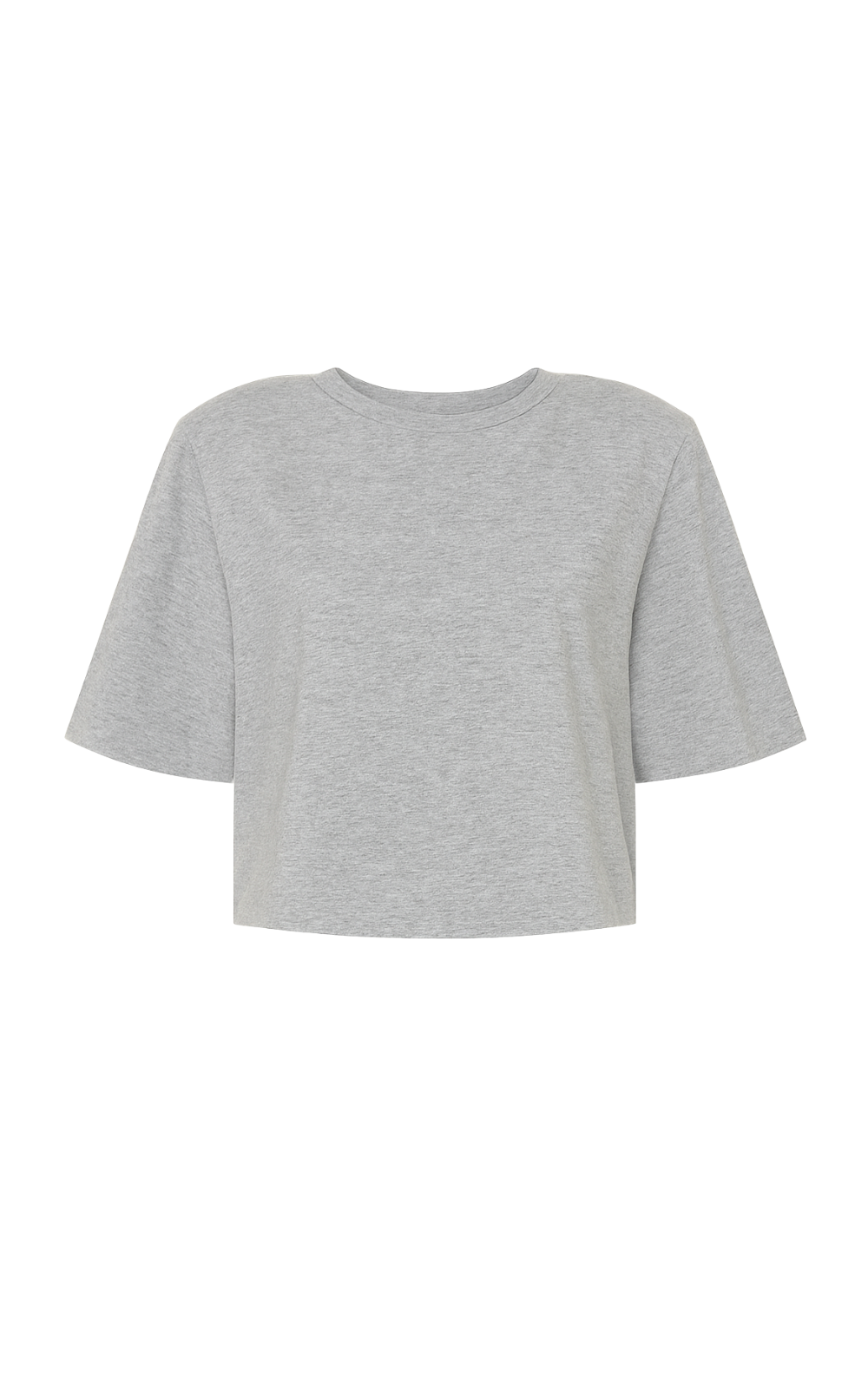 Dzięki poduszkom na ramionach, koszulka zyskuje wyrazistą formę i podkreśla sylwetkę, dodając stylizacji charakteru. Uszyta z wysokogatunkowej dzianiny bawełnianej, jest miękka w dotyku, oddychająca i przyjazna dla skóry.